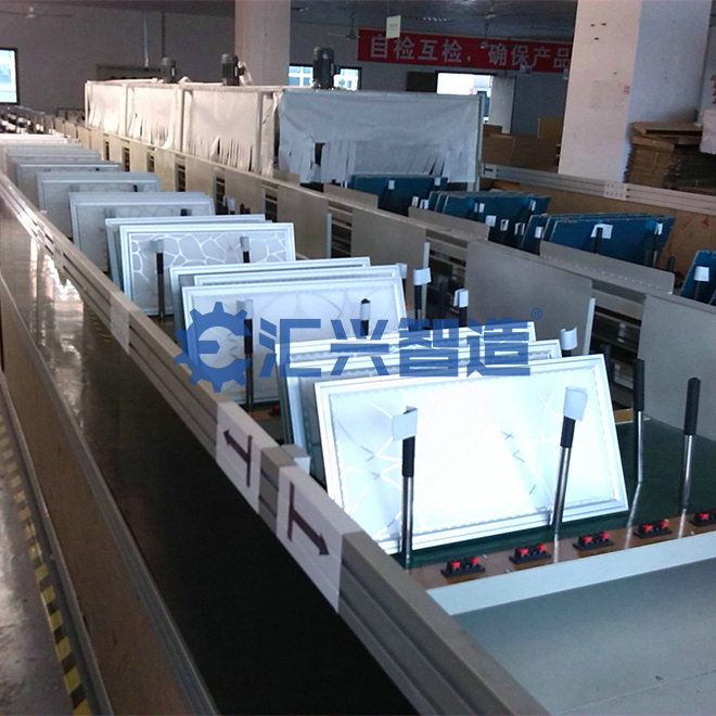 傳統的側面發光的LED面板燈只需將LED燈條用雙面膠固定于燈盤側面,現在越來越多企業選擇底部發光或者說正面發光的設計,而這種設計需要將LED燈條通過膠水將其粘接固定于燈盤底部,有些工廠貼4條,6條,8條,或者更多,取決于每個公司產品的設計,無論何種設計,都涉及到打膠貼燈條的工序,這一工序如果通過人工來實現,會出現打膠不均勻,速度慢,無法達到批量化生產的要求,耗費較高人力成本的同時,打膠粘接質量也無法滿足產品質量要求,所以引入自動點膠機勢在必行。匯興智造根據市場需求,研發設計了此款LED面板燈多頭自動點膠機。