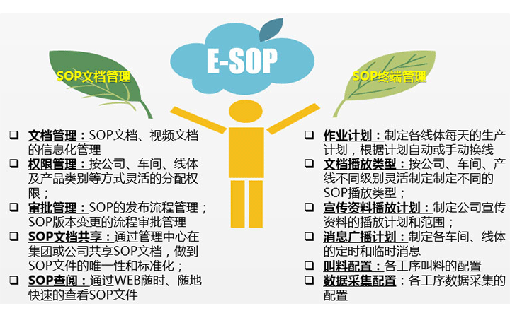 ESOP作業指導書系統,是一套由顯示器來代替普通紙張,實現無紙化辦公,電子顯示作業指導的系統,可實現由掃描器,手機等提交發布作業指令,支持EXCEL、PDF、視頻等文件格式。