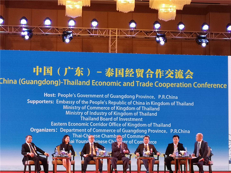 交流會上進行粵港澳大灣區與泰國合作發展研討暨廣東省企業未來發展計劃介紹,廣東省商務廳副廳長陳越華先生作主持。廣東省發展與改革委員會主任、推進粵港澳大灣區建設領導小組辦公室主任葛長偉先生帶來《共享粵港澳大灣區發展新機遇、推動廣東與泰國合作發展》的主題分享,珠海格力電器股份有限公司董事長董明珠女士、科大訊飛科大訊飛股份有限公司高級副總裁杜蘭女士介紹企業未來在泰國合作發展及投資計劃。交流會還進行《粵港澳大灣區建設背景下粵港與泰國合作發展機遇》研討沙龍環節,與泰國政商界代表共同探討促進廣東和泰國雙方的交流與合作。