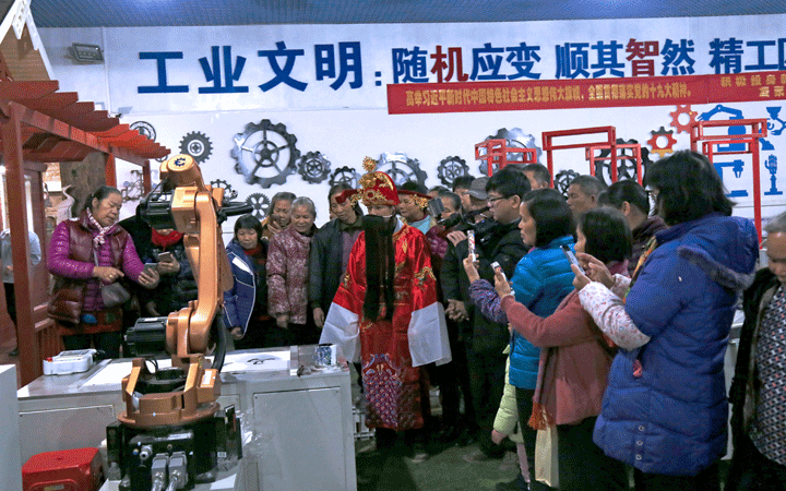活動現(xiàn)場,匯興智造黨支部、工會委員會、團工委等工作人員裝扮成財神為老人送上新年利是,陪伴老人一同參觀匯興智造工業(yè)4.0智能裝備體驗館,體驗智能制造“隨機應變”“順其智然”改變傳統(tǒng)生產(chǎn)的魅力;觀看由匯興智造員工自編自演的京劇舞蹈廠歌等文藝節(jié)目,感受匯興智造“用情做人、用心做事”,“敬天愛人,孝道為先”的文化力量。