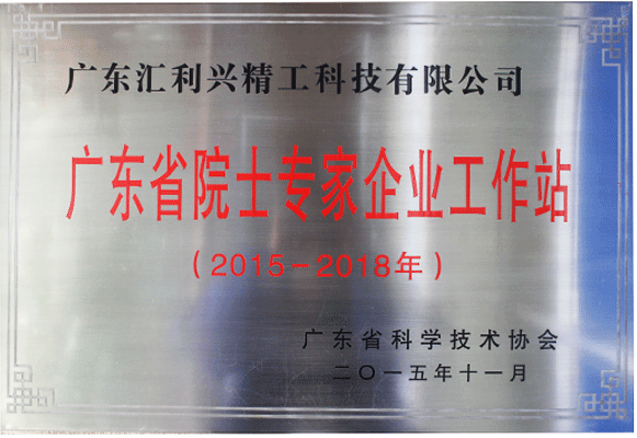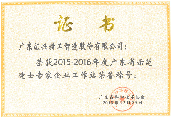 匯興智造廣東省示范院士專家企業工作站榮譽證書