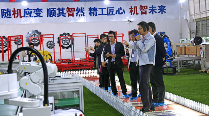 201713日,天安數(shù)碼城總建筑師李永凱一行到訪匯興智造交流學(xué)習(xí),董事長(zhǎng)特助柯火炎對(duì)他們的到來(lái)表示熱烈的歡迎,并親自帶領(lǐng)參觀了開(kāi)館不久的工業(yè)4.0體驗(yàn)館,介紹了匯興智造“順其‘智’然”、機(jī)‘智’未來(lái)”的設(shè)計(jì)理念,如何打造源于自然、貼近生活的智能工廠,聽(tīng)了柯秘的介紹,李永凱建筑師表示深度的認(rèn)同:在這里,我看到的不是鋼筋、水泥、混凝土,而是藍(lán)天、白云、綠草、小橋、流水、木屋、石柱……這里就是工業(yè)文明源于自然的生動(dòng)寫(xiě)照。
