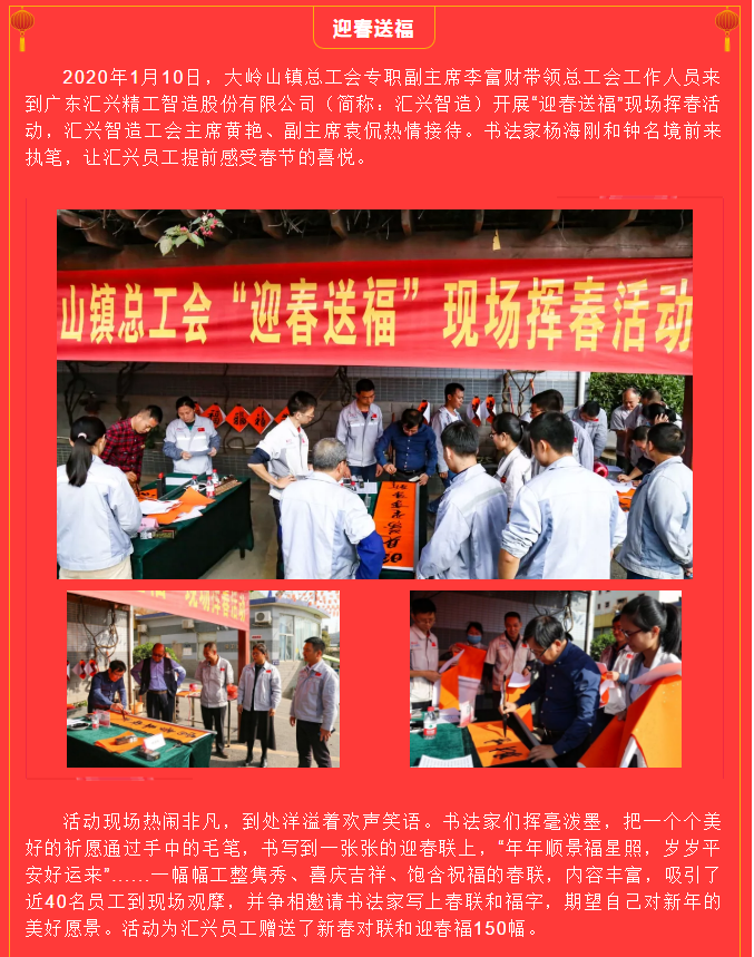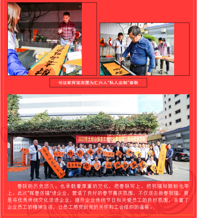 翰墨飄香送春聯,文化進企暖人心——鎮總工會來匯興開展“迎春送?!爆F場揮春活動
